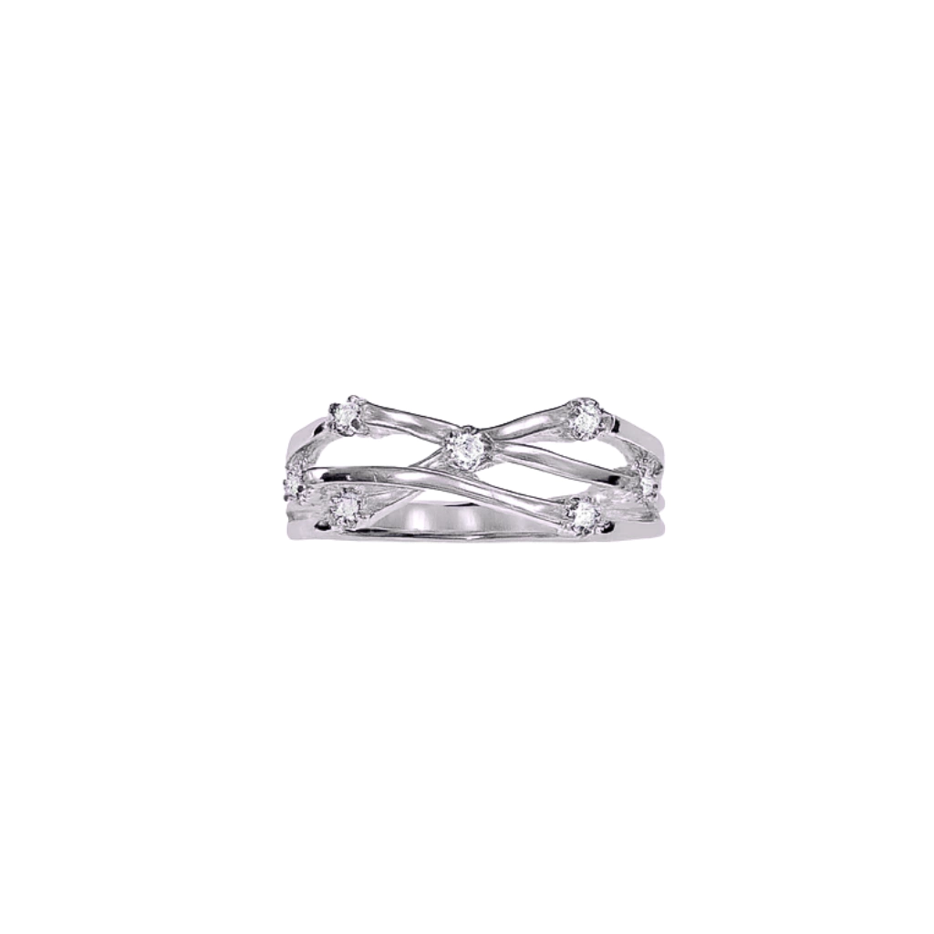 Anel trançado com zircônia prata — sofisticado e cheio de brilho, une o charme do trançado ao destaque das zircônias, criando uma peça elegante e moderna para qualquer ocasião.