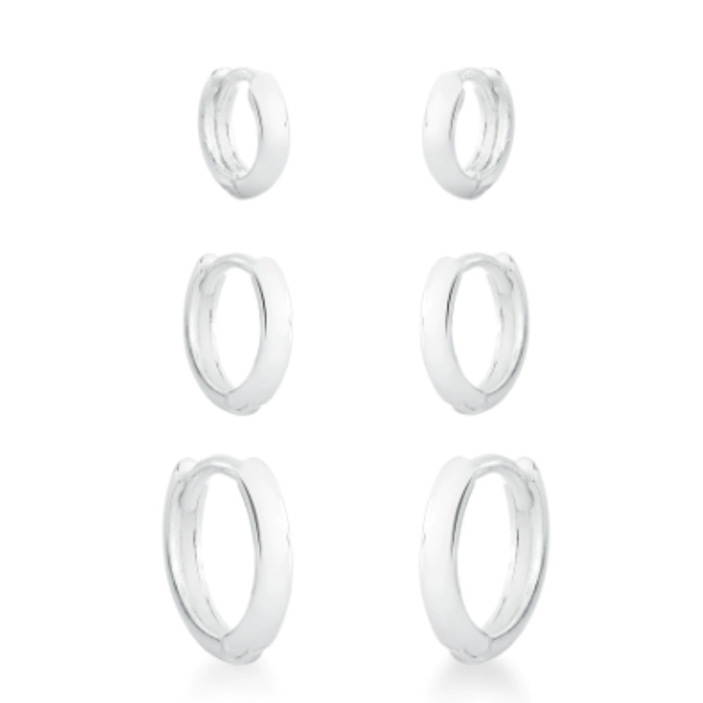 Brinco trio de argolas lisas prata — versátil e atemporal, com três tamanhos perfeitos para compor combinações modernas e elegantes